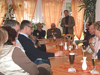 Rolf Meiberg hat eine kurze Information aus der Sicht der Bewertungskommission abgegeben. Er stellte ausdrücklich fest, dass die Präsentation des Dorfes Ampen sehr gelungen war und dass insbesondere die große Beteiligung der Amper Bevölkerung die Kommission beeindruckt hatte. Olaf Steinbicker, als Vertreter der Stadt Soest, zeigte nach einer kurzen, persönlichen Vorstellung die Entwicklung von Ampen auf. Er konnte u.a. deutlich veranschaulichen, dass sich die Bebauung nördlich der B1, im alten Dorf, nicht wesentlich verändert hat. Er stellte auch die starke Veränderung des Dorfes durch die Bebauung südlich der B1, ab 1970 bildlich dar. In seinem Vortrag ging Herr Steinbicker auch auf die noch vorhandenen Entwicklungsmöglichkeiten im Dorf ein. Er verwies darauf, dass mit einer Ausweisung von größeren, neuen Baugebieten wahrscheinlich nicht gerechnet werden kann. Möglichkeiten weiterer Neubauten im Dorfgebiet wurden von ihm aber beispielhaft angesprochen. Auf seinen Vorschlag hin wird der Verein „ANADOPA“ zu einem Arbeitskreis einladen, der sich mit weiteren, zukünftigen Entwicklungspotenzialen in Ampen beschäftigen wird. Herr Steinbicker hat dazu auch seine persönliche Unterstützung zugesagt.
