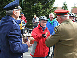 Dieser Schnaps wurde von den anwesenden Radlern, angesichts der kühlen Witterung, gern angenommen. Nachdem alle dann mit dem wärmenden Tropfen versorgt waren, ging es weiter zu der nächsten Station der Pilger- Radtour.