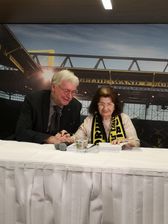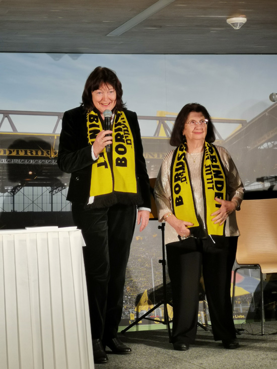 Etwa 1 Stunde dauerte ihr Vortrag, der alle Anwesenden sichtlich mitnahm, sehr viele der über 500 Zuhörer hatten Tränen in den Augen. Nie wieder – heißt das Signal, das der Verein Borussia Dortmund damit aussendet!