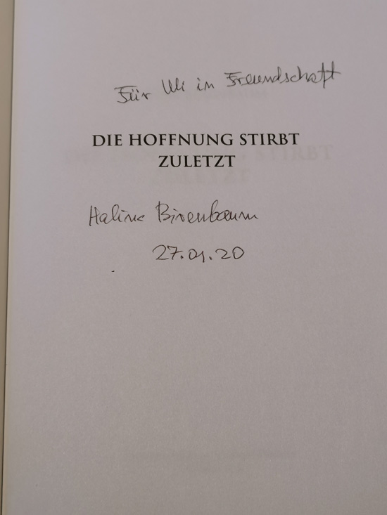 Halina Birenbaum signiert ihr Buch für Ulrich Dellbrügger