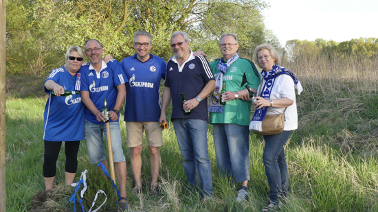 Die Amper Ketten-Sägen lösten am 19.04.2018 ihre Spielschuld anlässlich des Tipp-Kick-Derbys gegen die Amper Eichen ein und pflanzten eine "Fichtel-Tanne" in Form einer Stileiche auf der BVB-Allee in Ampen an der Schwefer Straße. Schalke-Fans und Sympathisanten der Amper Eichen sowie Interessierte begleiteten die Pflanzaktion, die um 19.04 Uhr pünktlich startete.