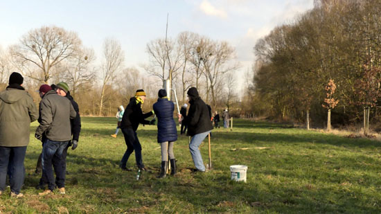 Am 24.2. wurde an der Schwefer Straße die BVB Eichenallee um 9 neue Eichen erweitert. Trotz der Kälte, aber Sonne, war die Stimmung super. Zum Aufwärmen und zur Feier ging es anschließend zu Erkan in die Ameribar. Foto: König