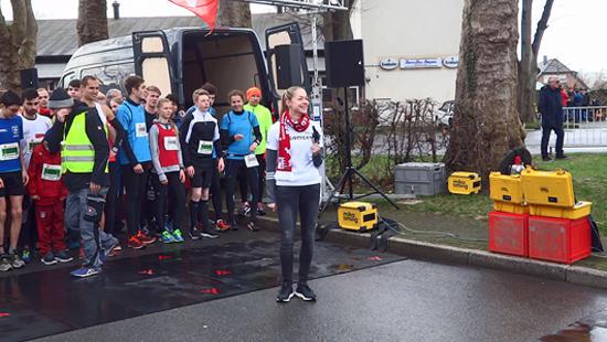 Jetzt geht es gleich los. Gina Lückenkemper schickt die Läufer auf die Strecke.