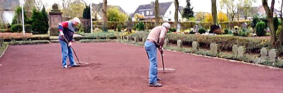 Rechtzeitig vor dem Volkstrauertag hatten Mitglieder des neuen Amper Vereins „ANADOPA, Verein für Kultur, Geschichte und Brauchtum in Ampen“ in den zurückliegenden Wochen mehrere Arbeitseinsätze auf dem Amper Friedhof durchgeführt. Im Bereich des Ehrenfriedhofes, des Grabfeldes für die verstorbenen und vermissten Soldaten aus Ampen ist der komplette Bodenbelag ausgetauscht worden. Der bisherige Bodenbelag ist laut Aussage älterer Amper Mitbürger 1954 aufgebracht worden. Im gesamten Bereich des Ehrenfriedhofes ist seitdem keine ausreichende Pflege erfolgt.